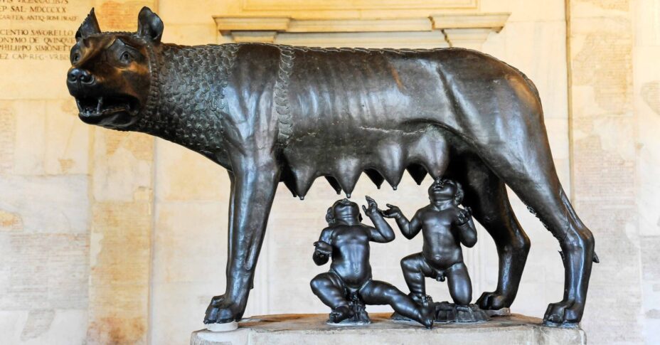 Lorsqu’on évoque les origines de Rome, on ne peut s’empêcher de penser à cette étonnante image de deux petits enfants tétant avec avidité le sein d’une louve, la célèbre Louve capitoline, conservée au Musée du Capitole à Rome.