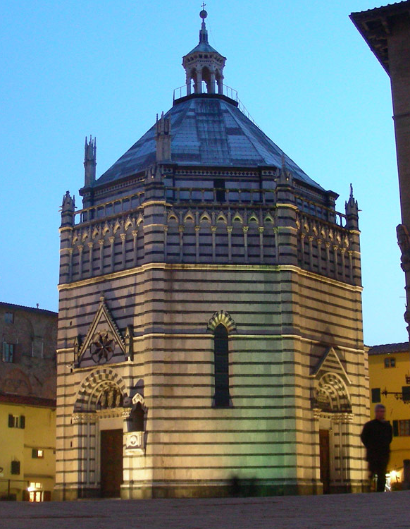 Il tient son nom d’une église lombarde qui se trouvait à cet endroit. Il pourrait avoir été construit au XIV° siècle par Nicola Pisano d’après des plans d’Andrea Pisano. De forme octogonal, recouvert d’un revêtement de bandes alternées de marbre blanc et vert, son style, qui réunit des éléments architecturaux florentins, pisans et siennois, le définit comme gothique toscan.