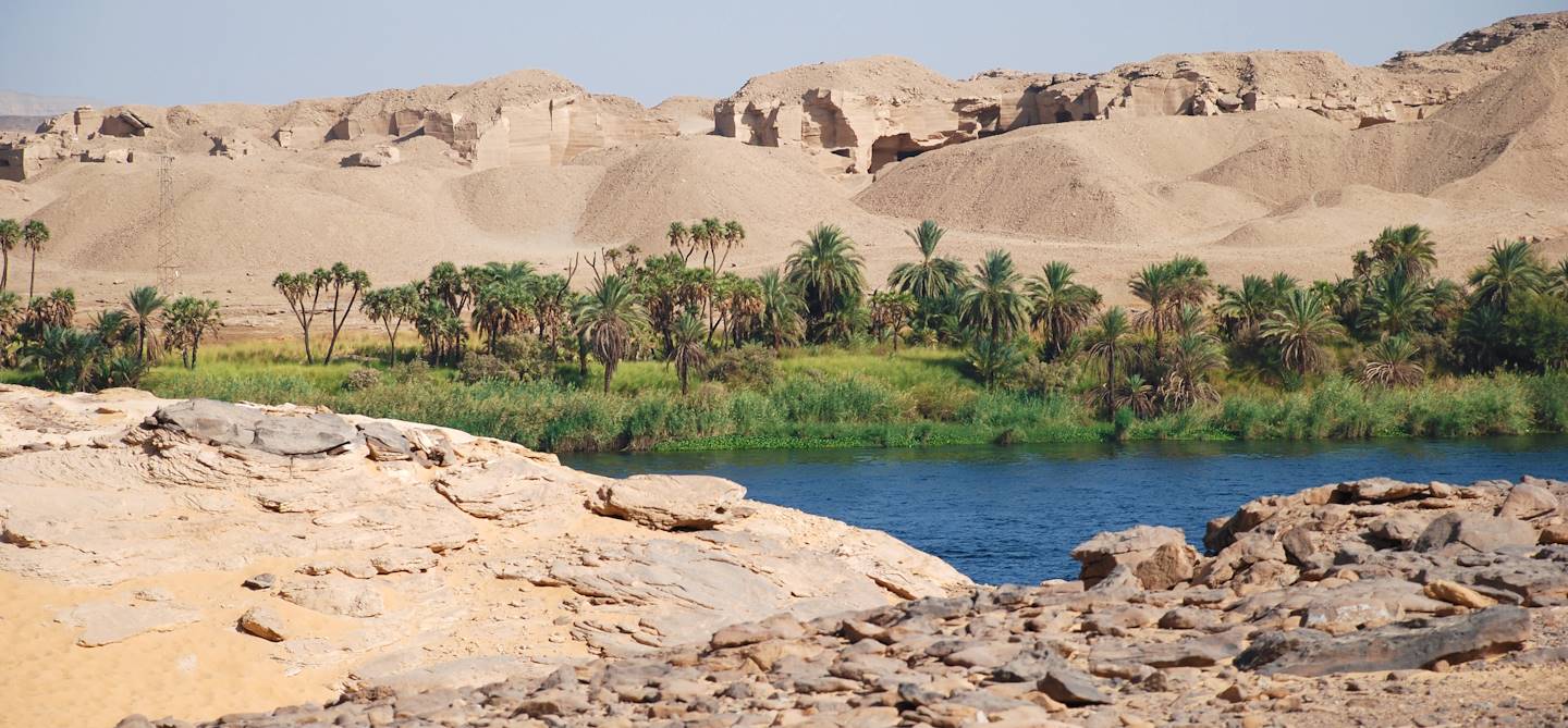 Au nord de la ville d’Assouan et au sud de Louxor, Gebel Silsileh marque le point le plus étroit du Nil. Auparavant, le site était une importante carrière de grès dont les mines s’étendaient de chaque côté du fleuve. Aujourd’hui demeurent toujours les collines de grès d’où étaient extraits les blocs de pierre servant à la construction des temples à partir de la XVIIIème dynastie. Avant cette époque, les mines de calcaire de Gebelein étaient utilisées mais elles furent épuisées, ce qui poussa les Égyptiens à se tourner vers le grès. Le Gebel Silsileh est alors devenue la plus importante carrière de grès de l’Égypte. Cette carrière a approvisionné la plupart des talatats utilisés pour construire les édifices importants de l’Égypte ancienne tels que ceux de Louxor, d’Amarna, de Karnak. Cependant, le site n’était pas exclusivement dédié à l’activité minière, des cultes importants se tenaient également au Gebel Silsileh. On y vénérait le dieu des crocodiles et des eaux, Sobek.