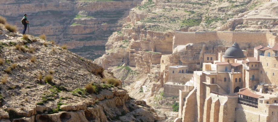 Accroché à la montagne et surplombant la célèbre vallée du Wadi Qelt, construit au V° siècle sur un ermitage, le monastère grec orthodoxe, l’un des plus anciens en Israël, s’est développé au VI° siècle grâce à saint Georges de Koziba, moine et ermite qui y vécut et y mourut. Détruit en 614 par les perses qui en massacrèrent presque tous les moines, restauré un temps par les croisés, le monastère actuel date de la fin du XIX° siècle et du début du XX° siècle.
